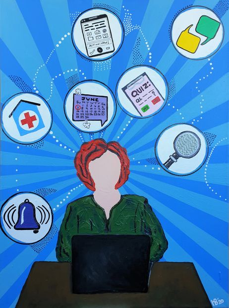 This artwork tells the story of the cognitive, emotional, and behavioural process of investigating behaviour change through digital pathways by engaging with a variety of different digital tools.